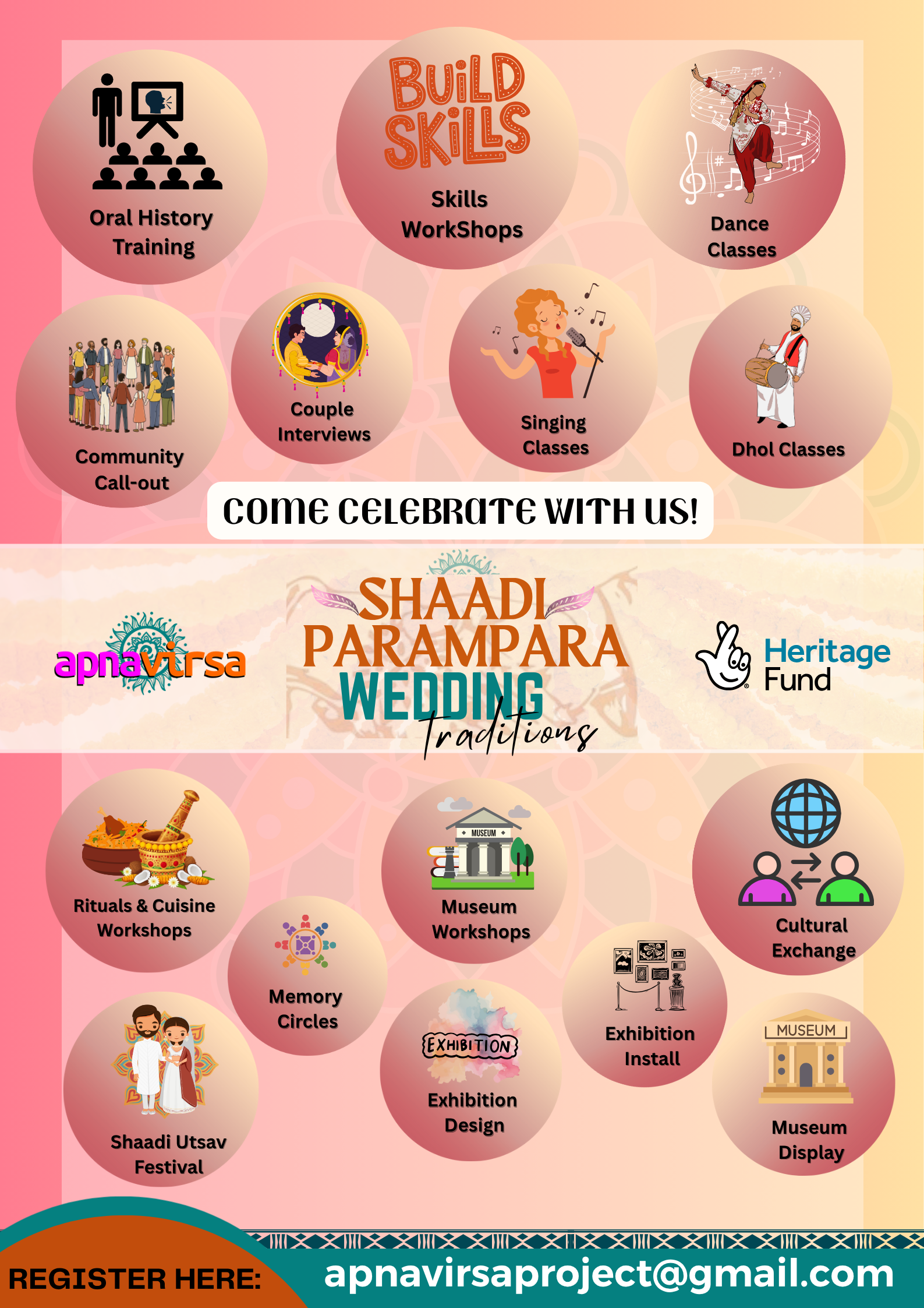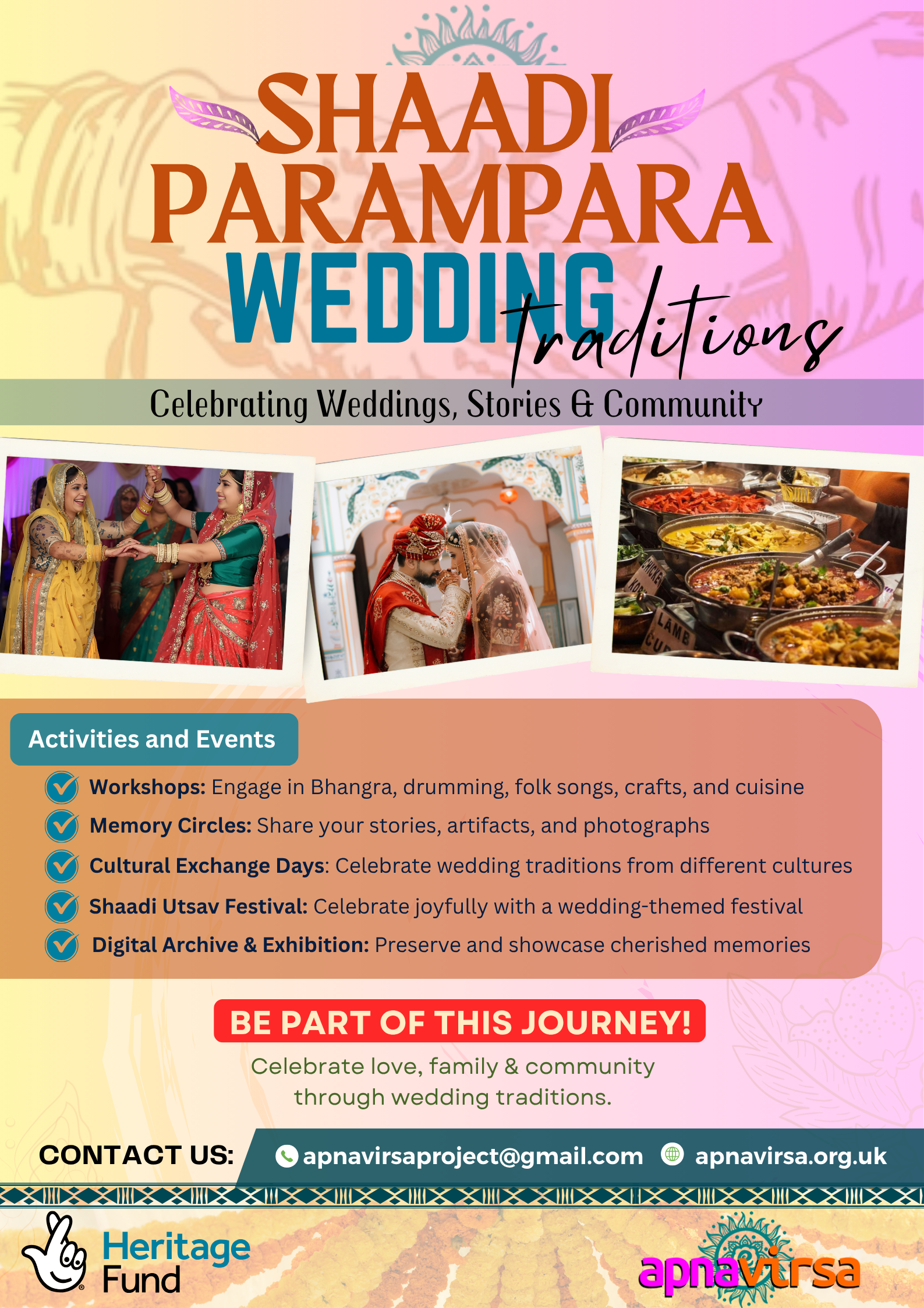Funded by the National Lottery Heritage Fund, Shaadi Parampara (meaning wedding traditions) is a new Apna Virsa project celebrating and preserving the rich cultural heritage of Indian weddings in Slough.